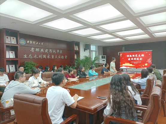 为庆祝新中国成立75周年,进一步增强党员身份意识,引领党员更加自觉地感恩党、听党话、跟党走,9月29日,Beat365中文官方网站流域泥沙与生态水文研究生党支部指导老师、学院副院长徐国策和全体学生党员在学科一号楼204会议室发起“我与祖国共奋进——迎国庆·心向党”主题党日活动。