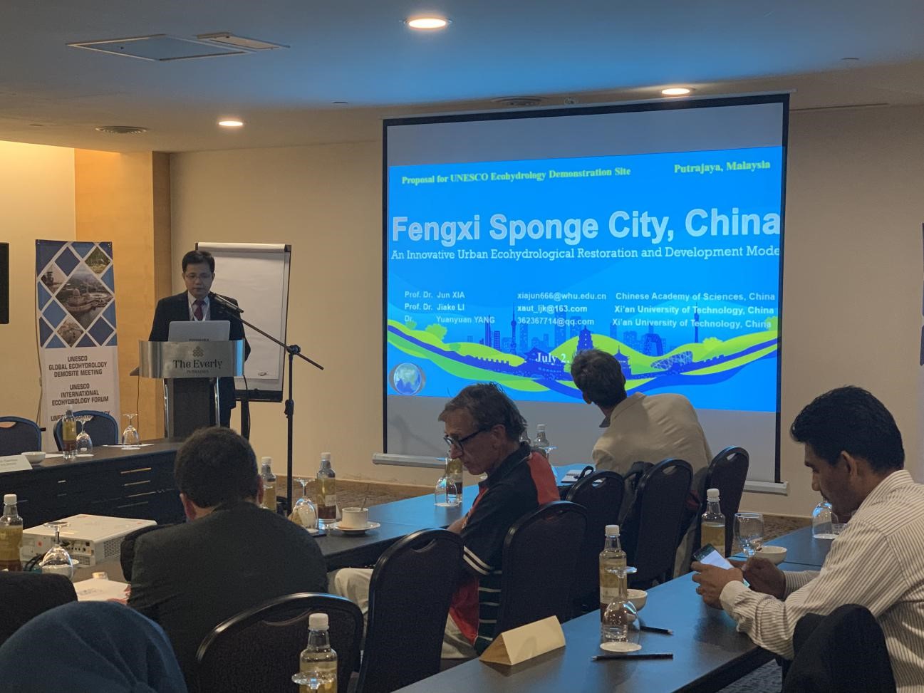 2019年7月1日-4日,受西咸新区沣西新城(2015年国家首批海绵试点城市之一)和中国科学院夏军院士委托,Beat365官网李家科教授和杨元园博士赴马来西亚联邦政府行政中心布城(Putrajaya),参加了由联合国教科文组织(UNESCO)召集的全球生态水文示范点会议。UNESCO官员和专家Giuseppe Arduino、Hans Dencker Thulstrup、Maciej Zalewski等出席了会议。会议听取了亚太、欧洲、非洲、拉美等15个已有示范点的建设成就展示,审议了中国沣西新城等7个新示范点的立项申请。李家科教授全面介绍了沣西新城生态海绵城市的建设经验和成就,沣西新城海绵城市发展范式获得UNESCO生态水文科学咨询委员会(Ecohydrology Scientific Advisory Committee)普遍认可。7月24日,沣西新城被UNESCO正式授权为两个新的全球生态水文示范点之一。联合国教科文组织生态水文示范点网络于2011年启动,包括本次获批,全球共有25个示范点(中国4个,包括沣西新城),旨在为流域(区域)社会和生态环境问题提供生态水文学解决方案,示范点的所有信息将向联合国教科文组织成员国和公众传播,以提升流域(区域)综合管理水平。
