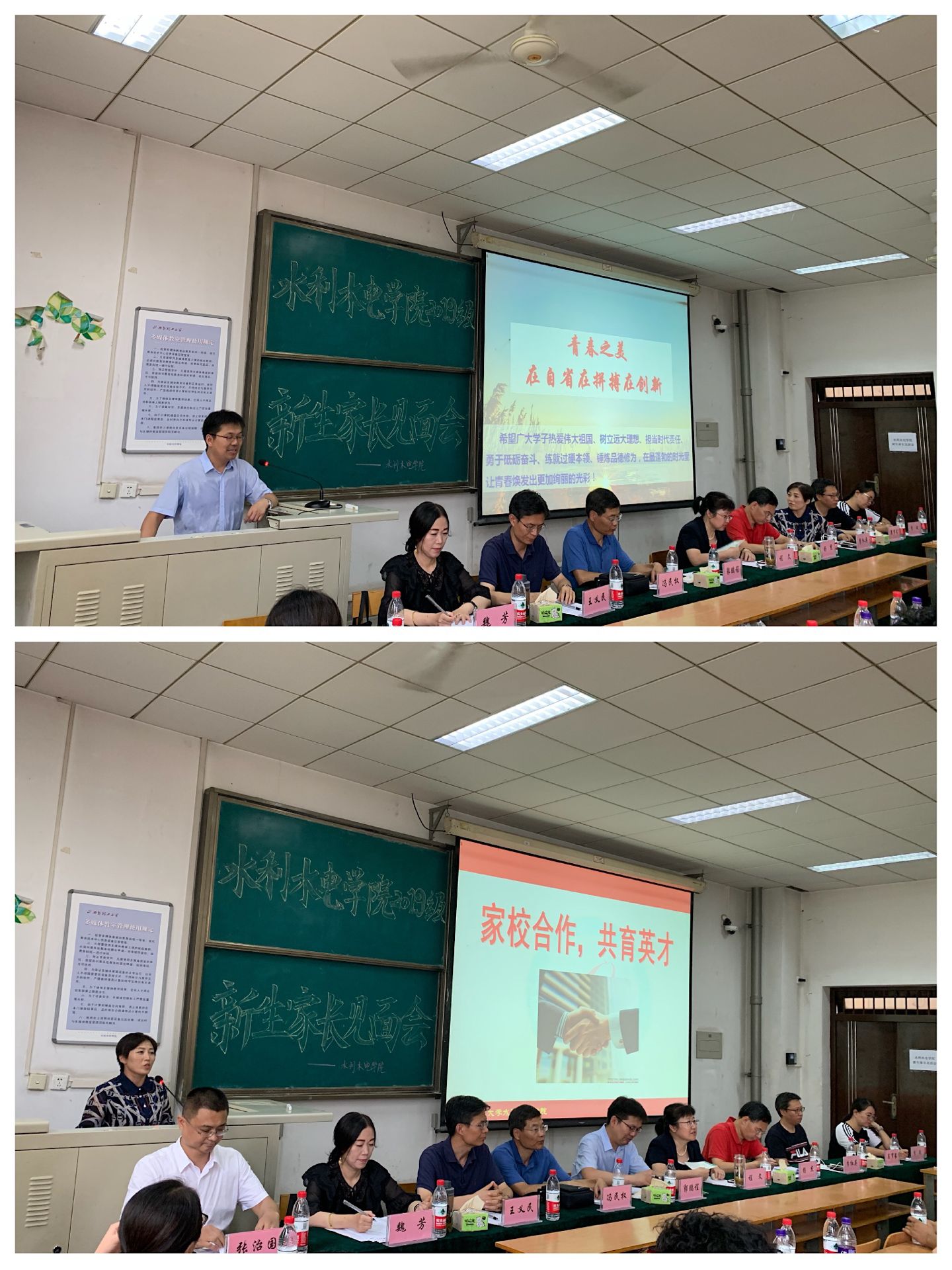 8月24日下午四点,Beat365中文官方网站2019级新生家长见面会在曲江校区教十楼202召开。院长郭鹏程,院党委书记程文,副院长杨杰,副院长冯民权,院党委副书记、副院长李红英,副院长王义民,院长助理、研究生科科长魏芳,院长助理吴罗长,院办主任李敏,2019级各班级导师、辅导员及200余名新生家长参加见面会。会议由院长助理、院学工办主任张治国主持。