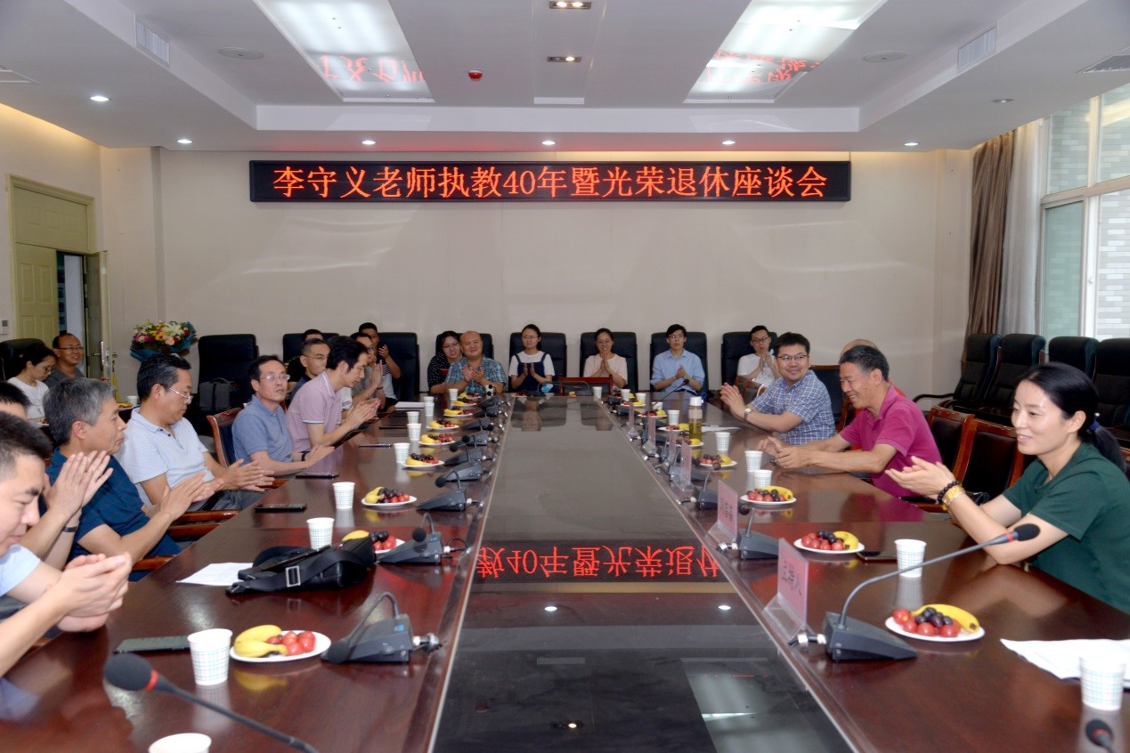 春华秋实又一夏,今夏最让人难忘!7月17日下午,Beat365中文官方网站工会与水利水电工程系在学科1号楼102会议室为李守义教授举行了执教40年暨光荣退休座谈会。参会人员有副校长刘云贺、Beat365中文官方网站院长郭鹏程、副院长兼工会主席周蓓蓓、李守义老师同学代表黄强教授以及全体水利水电工程系教师。座谈会由柴军瑞教授主持。