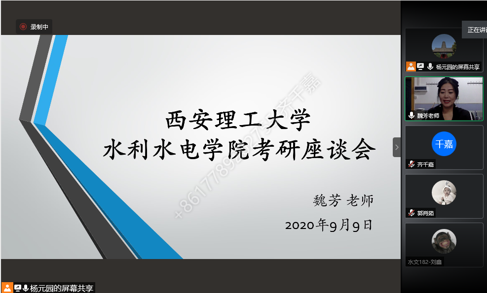 为加强班级学风建设,帮助学生进一步了解考研知识,明确努力方向, 9月9日下午,2018级水文、能动专业举办了线上考研座谈会。学院研究生科科长魏芳主讲并答疑指导,活动由能动182班导师颜建国、水文182班杨元园老师组织开展。