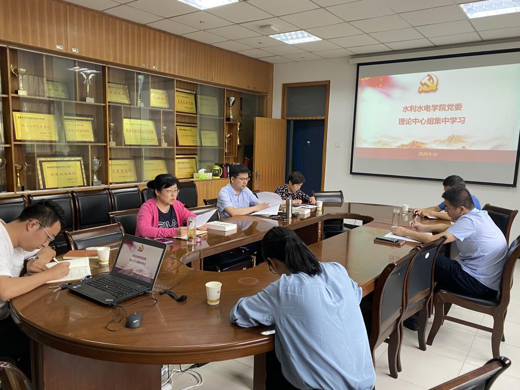院党委书记程文领学了“习近平在第三十六个教师节上的讲话”,并结合学院疫情防控工作作专题发言。她指出,疫情发生以来,学院教师能切实提升政治站位,积极响应国家号召,严格落实居家隔离,实时关注学生动态,特别是春季学期开学后,授课教师能及时适应线上教学方式,克服困难、主动思考、精心备课、耐心授课,这充分诠释了水院教工对于“教师”二字的使命和担当。她强调,学院班子成员要充分结合以案促改专题教育,在强化自身建设的同时,进一步走进基层深入调研,走进师生解决困难,为新学期师生工作学习创造良好条件。