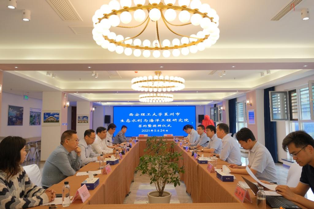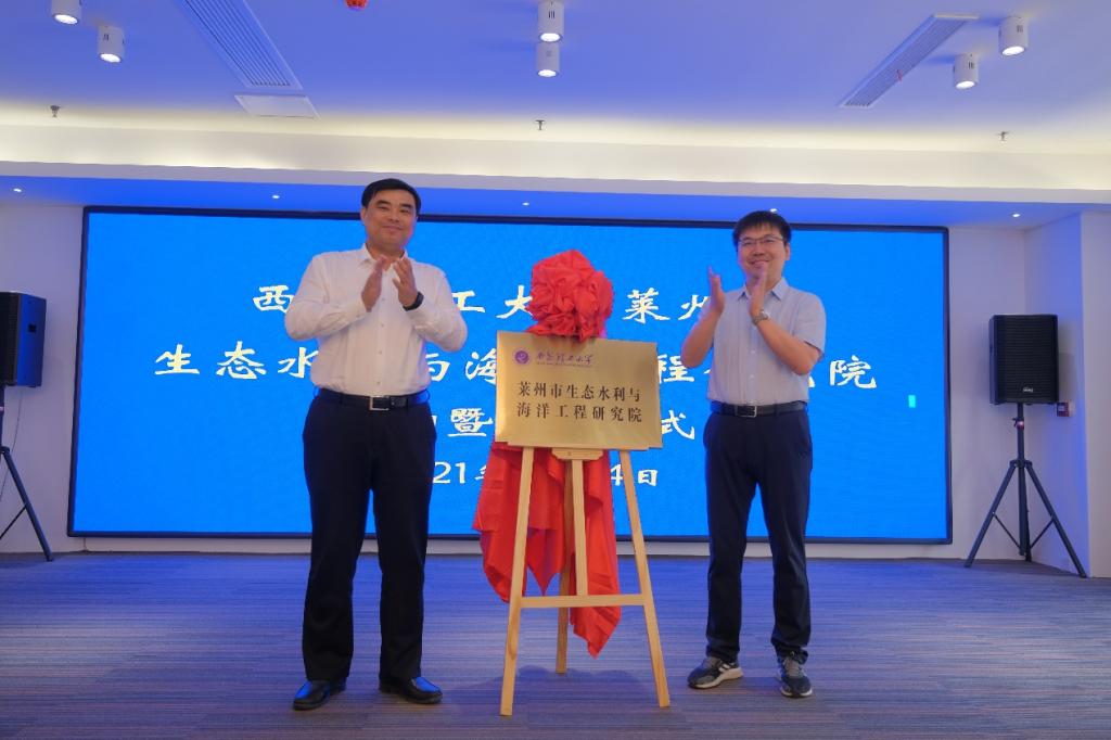 5月24日上午,西安理工大学莱州市生态水利和海洋工程研究院在山东省莱州市揭牌成立,西安理工大学技术研究院常务副院长曾昭智、Beat365中文官方网站院长郭鹏程,莱州市副市长孙磊涛出席签约仪式并为研究院揭牌。