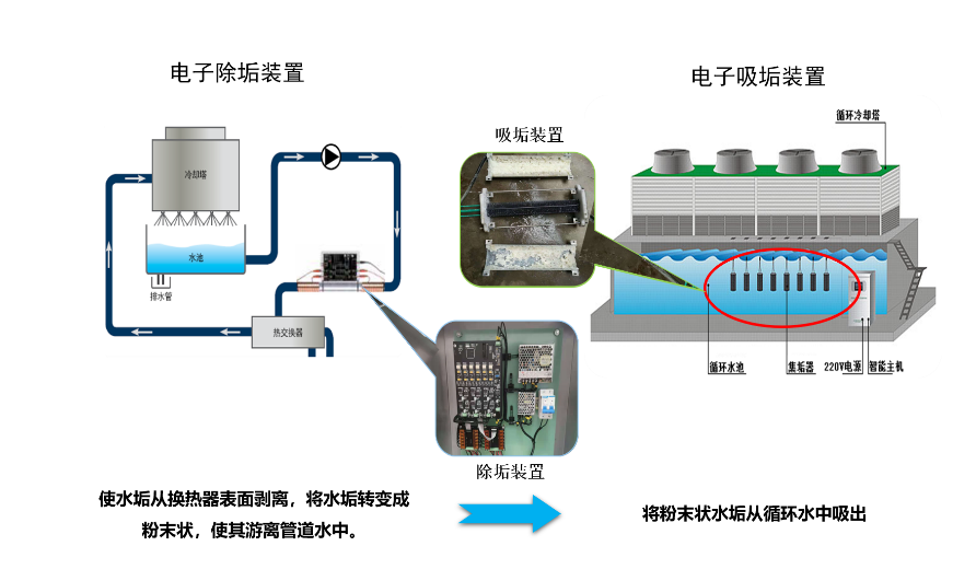 “零排放者-循环水电子除垢吸垢装置”项目产品主要由除垢装置和吸垢装置两部分组成,前者将水垢转变成粉末状,使其游离管道水中,后者将粉末状水垢从循环水中吸出,可以在循环水零排放的前提下高效除垢,环保、经济,市场广阔。
