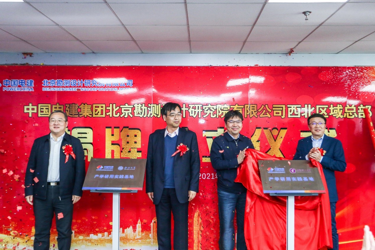 最后,郭鹏程院长和王斌副总经理共同为西安理工大学与中国电建集团北京勘测设计研究院有限公司“产学研用实践基地”揭牌。通过实践基地的共建,对学院在学生实习实训、教师实践锻炼、产学研用平台建设等方面的具有极大的促进作用。