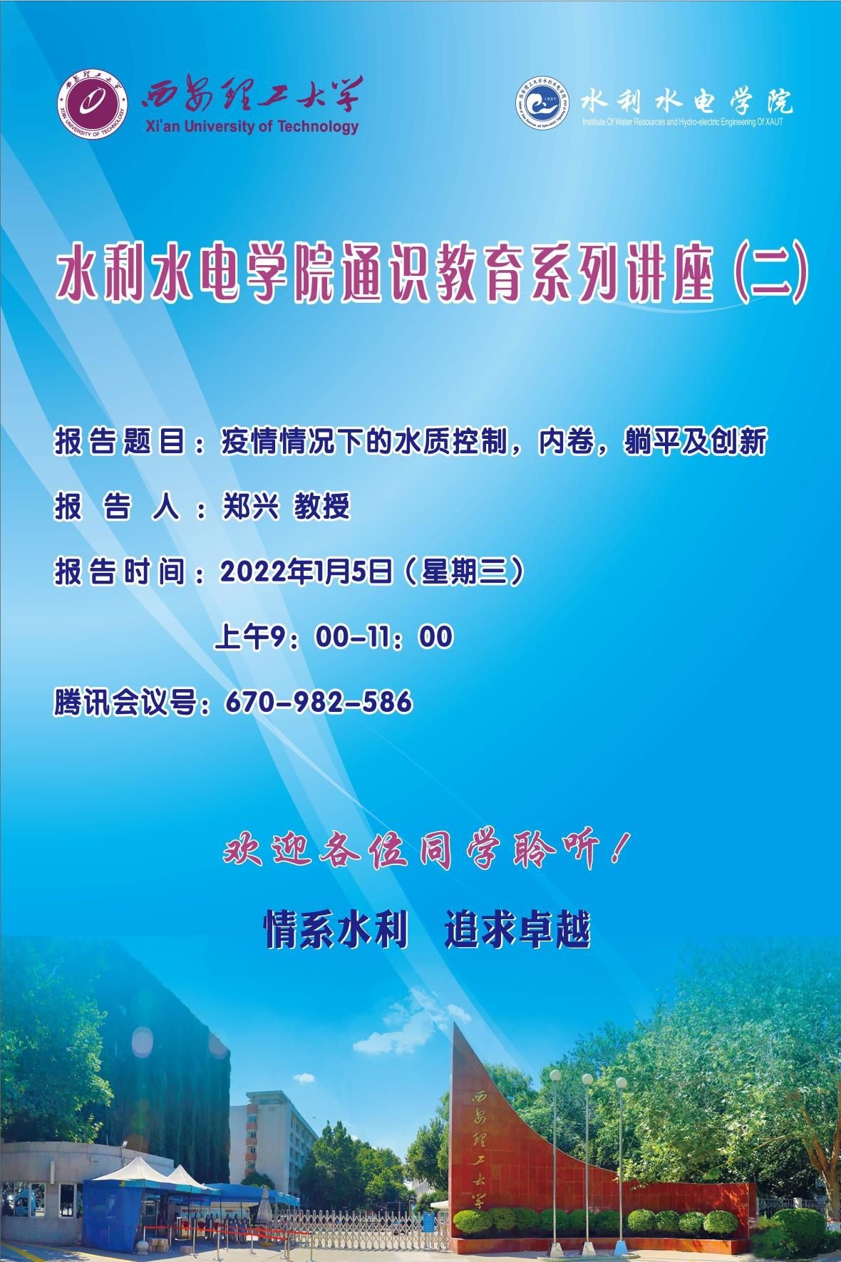 利用新旧学期交替的黄金空档期,水电学院以“责任-信念”为主题,围绕生态水利、智慧水利、工程水利等优势方向,邀请院士及国内外知名专家,组织举办Beat365中文官方网站通识教育系列讲座。旨在非常时期,引导学生静思学业规划,夯实专业基础,勇担专业使命。