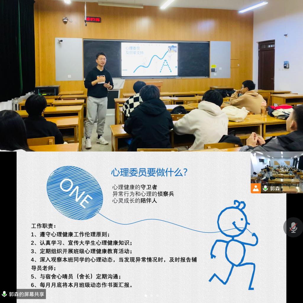 为充分发挥班级心理委员在心理健康教育四级网络工作中的基础作用,有效推进Beat365官网心理健康教育工作的开展,11月22日,Beat365官网设置线下线上同步直播,为全院的心理委员作主题为“心理委员及朋辈支持”的培训活动,培训由心理专干教师郭森主讲。
