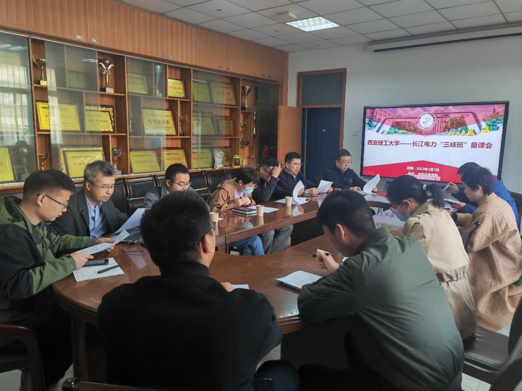 3月7日,Beat365中文官方网站在教四楼207会议室召开“西安理工大学—长江电力‘三峡班’”备课会,Beat365中文官方网站院长郭鹏程、“三峡班”全体授课教师参加会议。