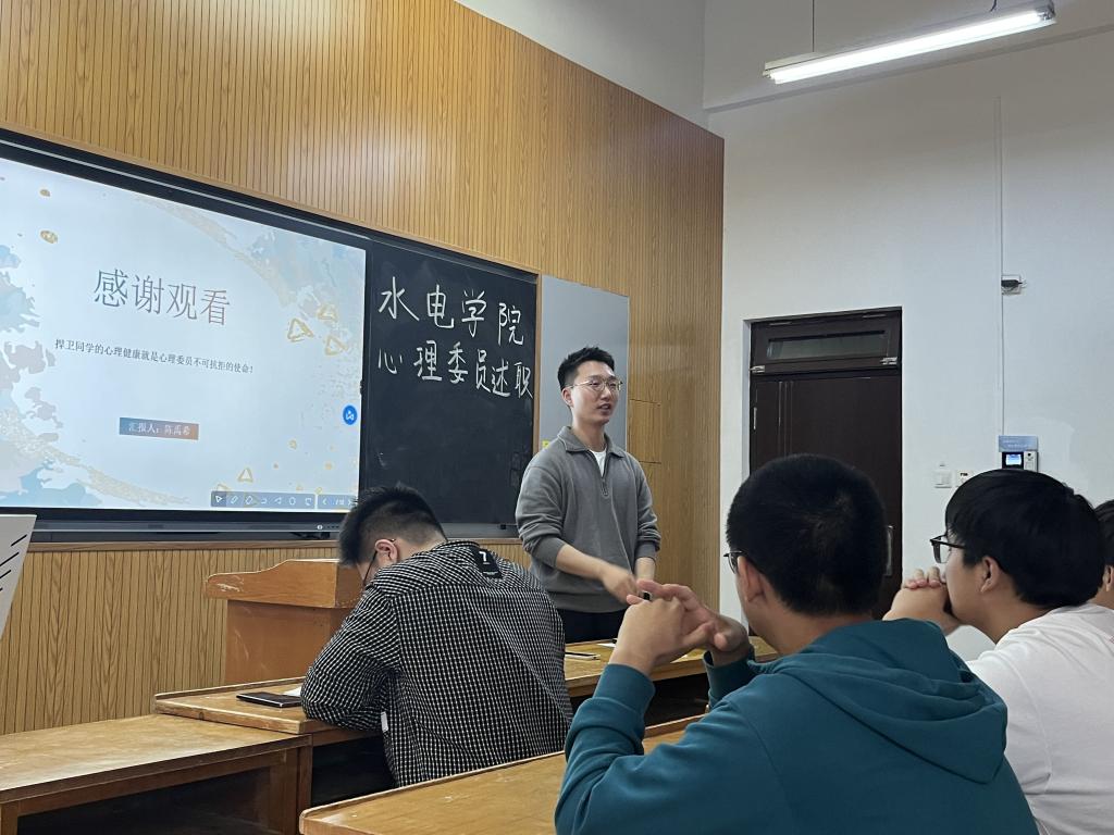 首先,孟庆龙强调了心理委员在班级工作中的作用,鼓励同学们充分利用比赛平台提升自身工作能力,达到“以赛促学”的目的。之后,各班心理委员依次上台,分享自己在工作中的成长,展示自己对心理知识的了解和掌握,讲述了自己在处理具体问题时的方法。之后,郭森老师针对各位心理委员在讲述中的问题一一给出解答,并肯定了各班心理委员结合班级特点开展的特色工作。经过打分,给排221梁子仪、水文221张迪、水工225买丽坎木·买买提,三位同学获得优秀心理委员称号。