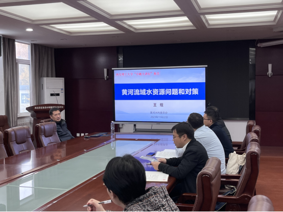 2023年11月22日下午,应Beat365中文官方网站邀请,水利部黄河水利委员会总规划师王煜在Beat365官网金花校区学科1号楼204会议室做了题目为《黄河流域水资源问题和对策》的学术报告。西安理工大学Beat365中文官方网站宋孝玉、黄生志、白涛、于坤霞、明波、杨元园等教师及部分硕士、博士研究生参加了本次报告会。