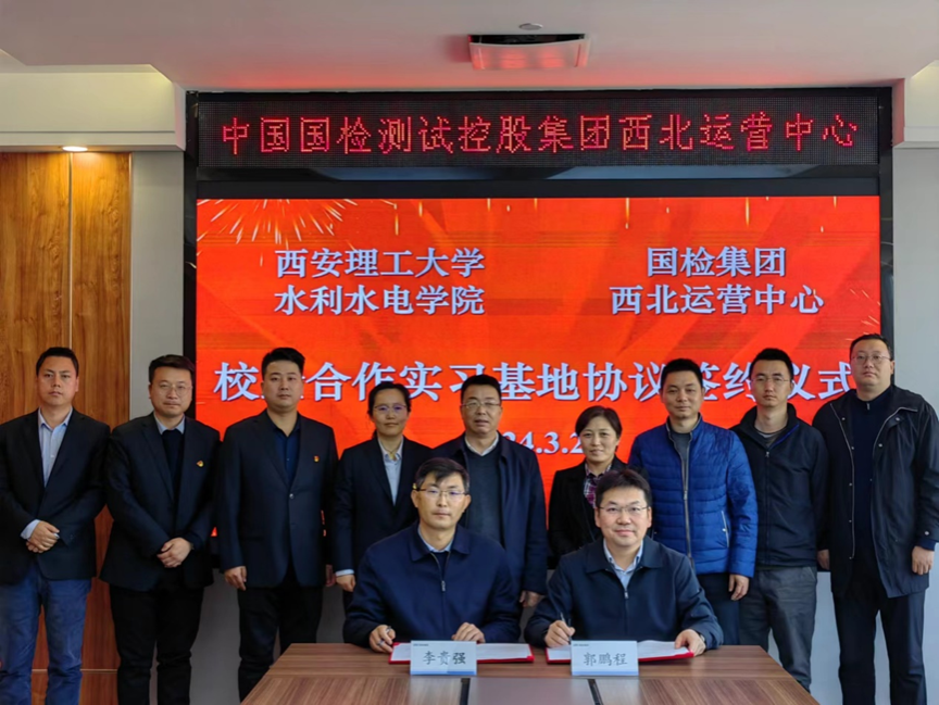 3月20日,Beat365中文官方网站院长郭鹏程、党委副书记兼副院长李红英一行赴国检集团西北运营中心交流走访,并签订校企合作协议,国检集团西北运营中心党委书记、董事长、总经理李贵强,党委委员、副总经理焦红斌等出席签约仪式。