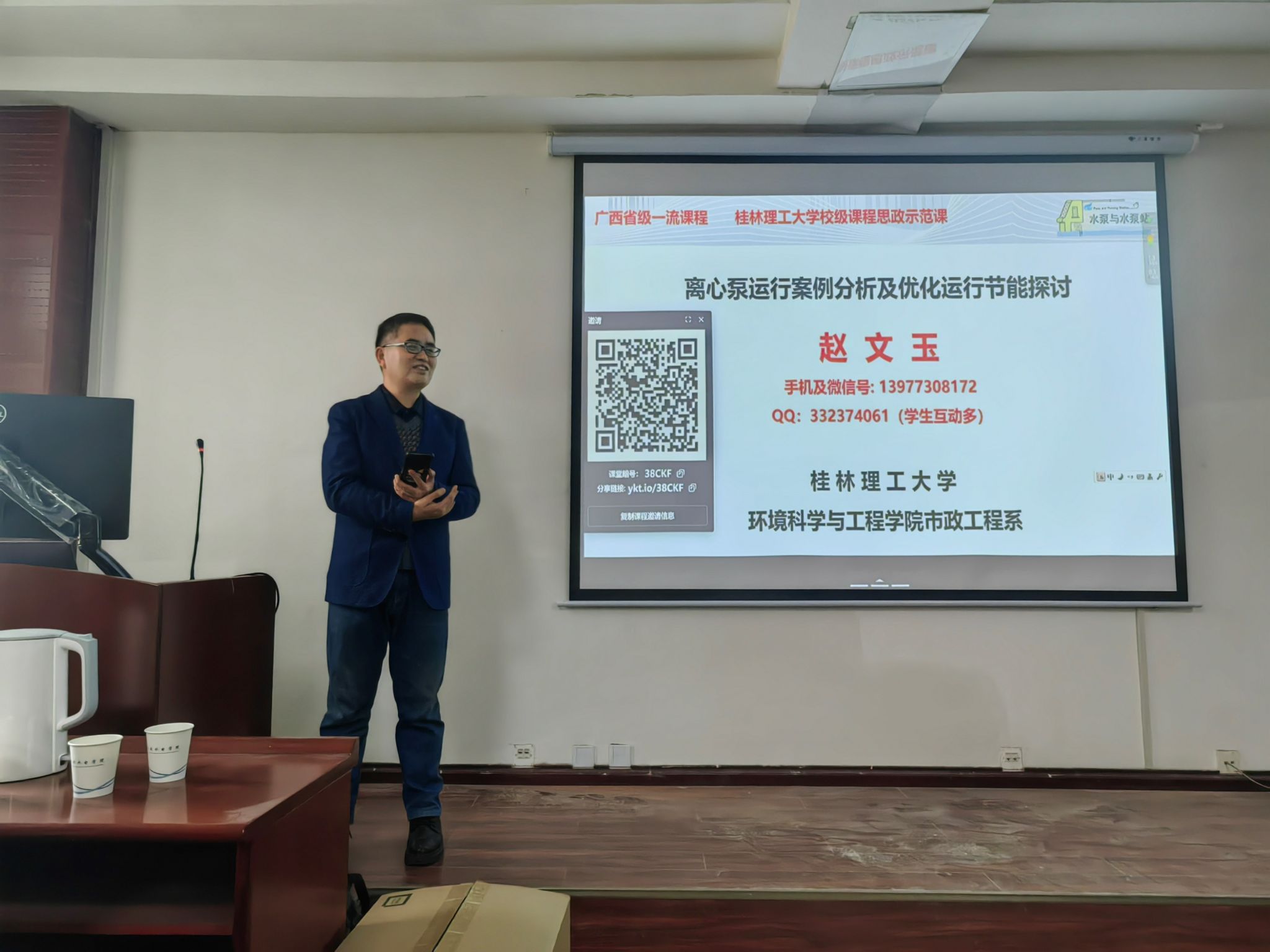 交流期间,赵文玉老师为正在开展毕业设计的给排水科学与工程、环境工程专业2020级学生带来了一堂生动的“离心泵优化运行及节能探讨”设计案例课。赵文玉老师以亲自参与的某泵站设计案例入手,引导学生应用专业知识分析水泵在试运行过程中出现水量不足的原因。在此过程中,不仅穿插了水泵选型和泵站节能设计等专业知识,还充分融入了课程思政元素和新工科理念。在案例课最后,赵老师号召同学们认真完成毕业设计,为顺利适应未来的工作岗位需求打下良好基础。