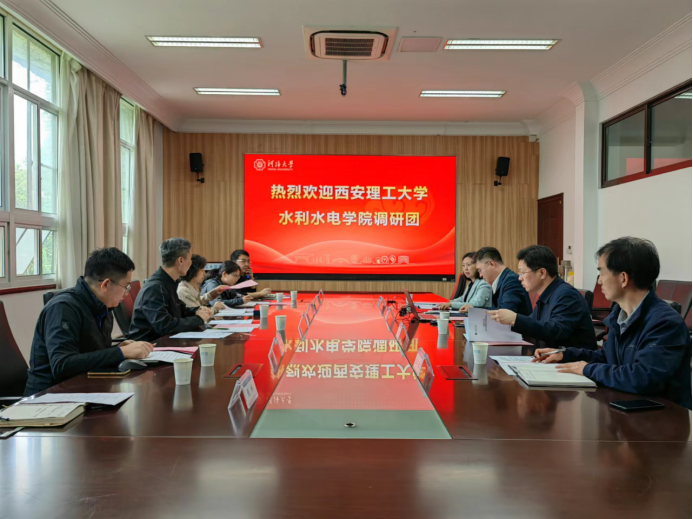 为进一步深化教育教学改革,提升本科人才培养质量,全面推进水文与水资源工程专业2024版培养方案修订工作,4月12日,西安理工大学Beat365中文官方网站水文水资源系副主任刘登峰、教师代表汪妮、杨元园、李婧、李蓝君和张林一行6人组成调研组,前往河海大学水文水资源学院开展本科培养方案修订专题调研。河海大学水文水资源学院党委书记石朋、副院长吴志勇、副院长任黎和水文水资源实验中心主任王万杰与调研组一行人在河海大学水文水资源学院进行了交流座谈。