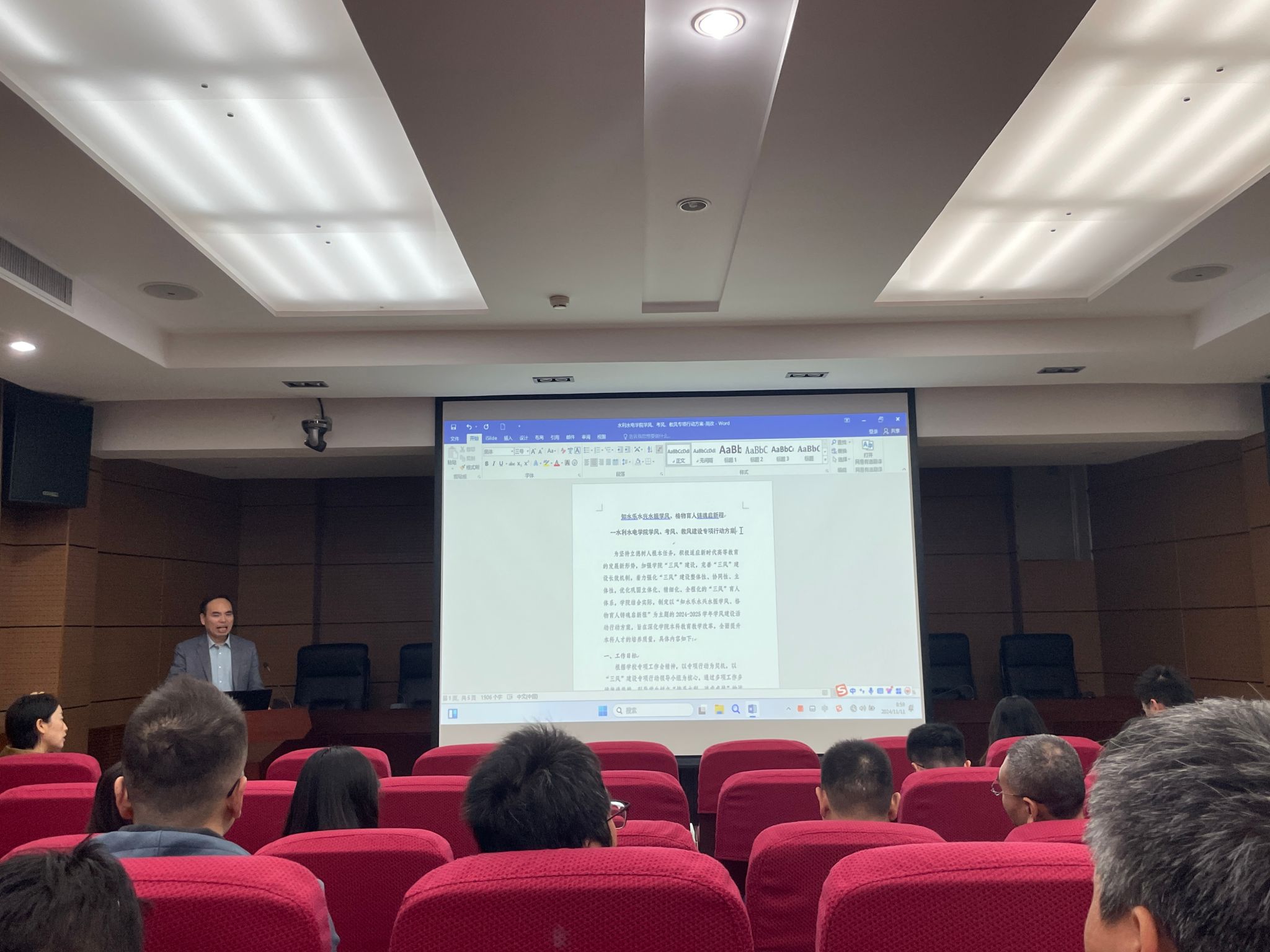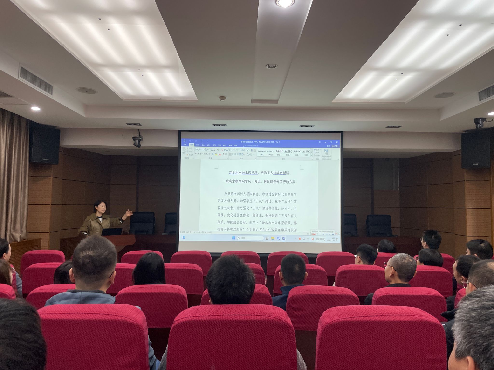 11月11日,Beat365中文官方网站在学科一号楼103报告厅组织召开“知水乐水兴水振学风、格物育人铸魂启新程”学院“学风、考风、教风”建设专项行动工作解读会,Beat365中文官方网站党委副书记兼副院长李永阳、副院长周蓓蓓、全体本科生导师、辅导员、教务员参加会议。