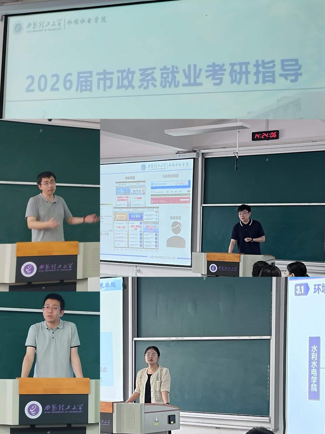 会上,王东琦老师聚焦学院市政工程系的学科建设与发展,带领学生系统回顾了系所的发展历程,详细介绍了研究生招录的专业方向、特色研究领域、实力雄厚的导师团队以及先进的科研平台资源。结合考研与就业两条路径,条分缕析地为同学们解读了不同选择的前景与要求,引导大家认清形势,客观评估自身条件,做出最适合个人发展的理性决策。