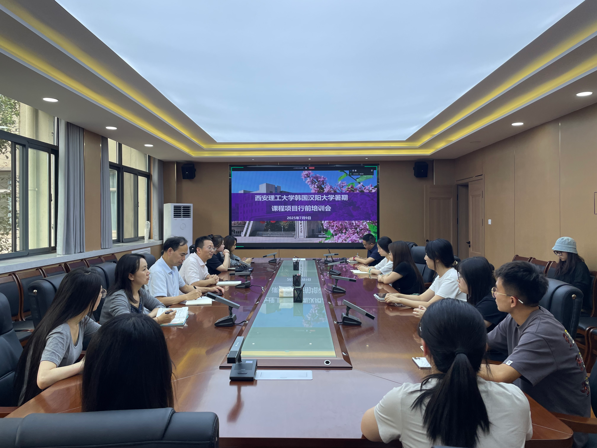 7月9日,Beat365官网在教四楼226会议室召开赴韩国汉阳大学暑期课程项目行前培训会。学校国际处副处长蒋小龙,学院党委副书记李永阳,国际处赵睿、朱未未,带队教师杨元园、赵卉伊褶、李一博、王倩,以及暑期课程项目学生参加会议。