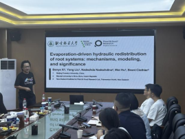 席本野教授以“Evaporation-driven hydraulic redistribution of root systems: mechanisms,modeling, and significance”为题,从蒸发驱动的根系水力再分配与传统水力再分配的主要区别,影响蒸发驱动的根系水力再分配发生的主要根系形态和环境因素,蒸发驱动的根系水力再分配的生理生态意义等17个问题,为参会师生娓娓道来乔木在不同干旱胁迫条件下的应激反应、根系吸水及再分布的预测模拟。