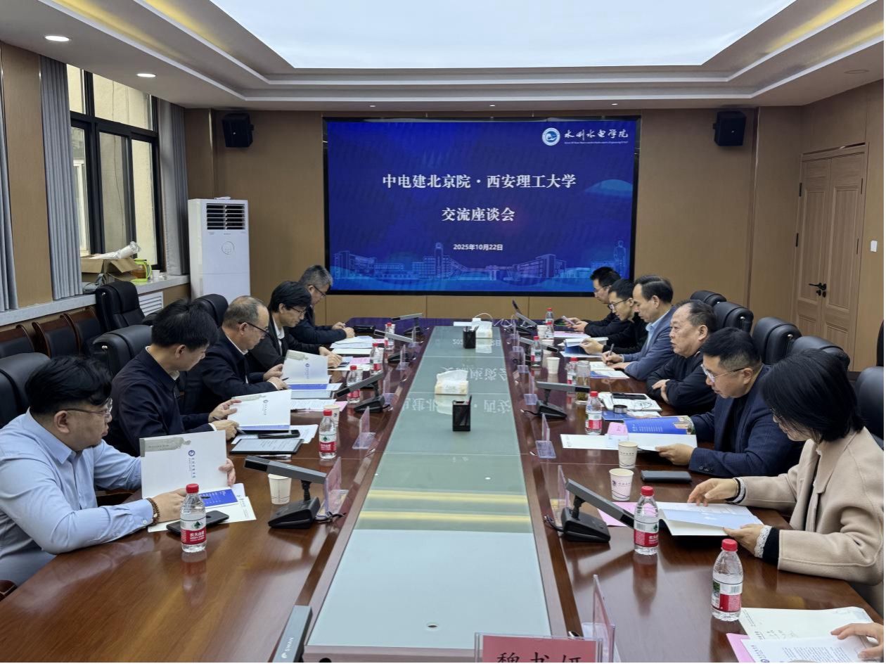 10月22日,中国电建集团北京勘测设计研究院有限公司副总经理苟东明等一行来Beat365官网调研交流。西安理工大学Beat365中文官方网站党委书记王瑞生、电气学院院长贾嵘等相关人员参加座谈。