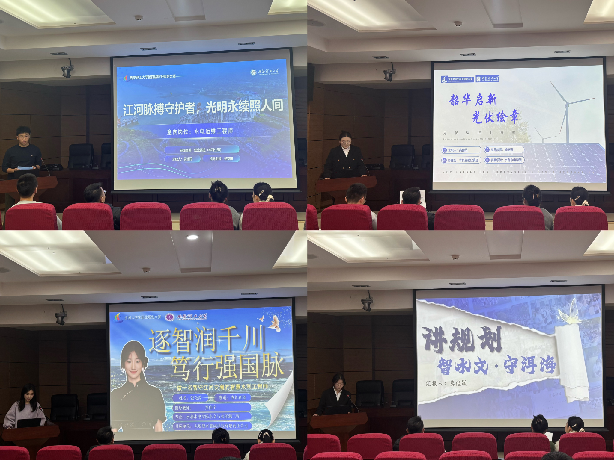 本次大赛设置成长赛道与就业赛道两大竞赛单元,旨在全面覆盖不同年级学生的职业发展需求。前期学院通过多渠道广泛宣传动员,得到全院学子的积极响应与踊跃参与。参赛选手紧扣“我的职业梦想”“我的就业规划”两大核心主题,结合水利水电相关专业背景与个人兴趣特长,从职业认知、发展目标、实施路径、评估调整等方面,系统呈现了兼具科学性与可行性的职业规划方案。比赛过程中,选手们精神饱满、从容自信,以逻辑清晰的演讲表达、扎实专业的内容储备展现了新时代水利学子的职业素养与发展潜力,赢得评审团的一致认可与高度评价。