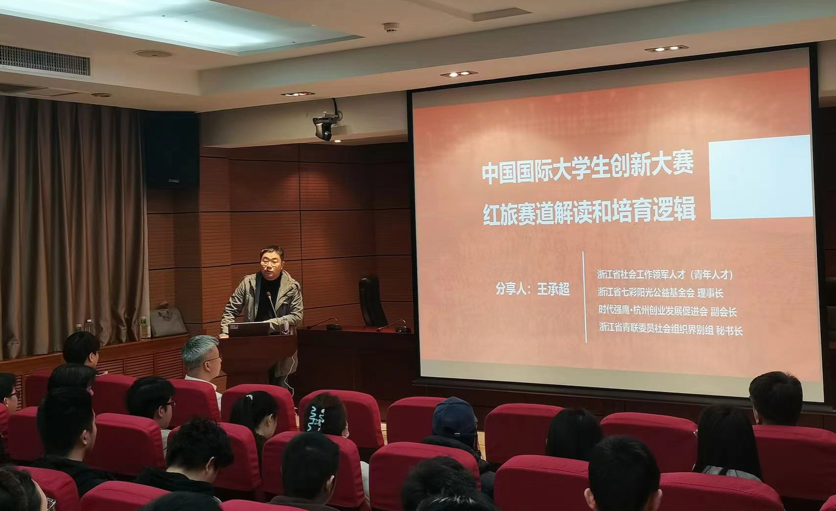 为进一步激发Beat365官网学生创新创业热情,提升创新实践能力,3月21日,Beat365中文官方网站在金花校区学科1号楼103报告厅举办2026年“科技筑梦、创享未来”创新训练营首场报告会。活动特邀杭州创业发展促进会副会长王承超作题为“中国国际大学生创新大赛红旅赛道解读和培育逻辑”的专题报告,吸引了近百名师生参与。报告会由Beat365中文官方网站院长助理颜建国教授主持。