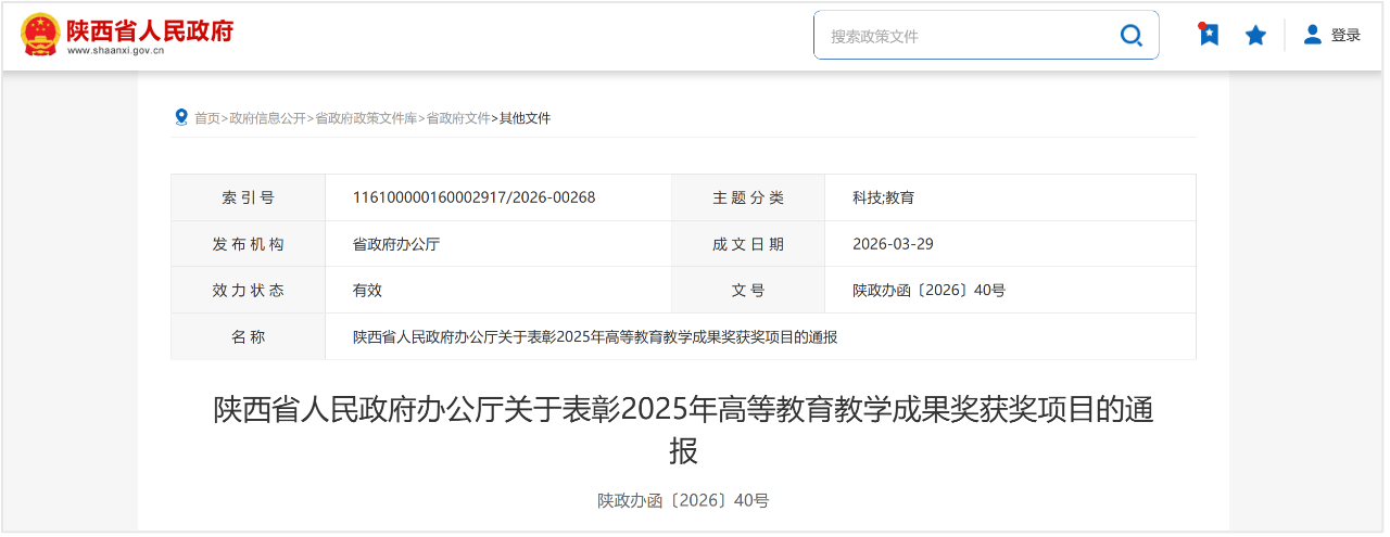 近日,陕西省人民政府办公厅正式公布《陕西省人民政府办公厅关于表彰2025年高等教育教学成果奖获奖项目的通报》(陕政办函〔2026〕40号),西安理工大学Beat365中文官方网站2项成果荣获特等奖。获奖成果分别为《全面、深度、共赢的校企合作水利卓越工程师培养模式构建与实践》《数智赋能、项目牵引、学科交融,培养“顶天立地”创新型水利人才》,彰显了学院在水利水电高等教育教学改革方面的突出实力和深厚积淀。
