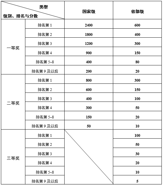 附件1 科技创新竞赛获奖计分分值
