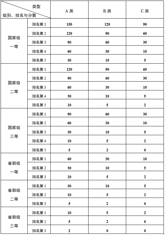 (8)国家级、省部级科技创新竞赛奖励按获奖类别及其排名情况计分,详见附件1。各类科技创新竞赛奖励均须提供获奖证书原件或学校正式公布文件,并提供由竞赛指导教师签名确认的项目排名证明材料。可用于研究生奖学金评审计分的科技创新(竞赛)范围参照《西安理工大学科技创新竞赛管理办法》西安理工本教〔2019〕5号文件和《西安理工大学研究生科技创新活动目录》执行。