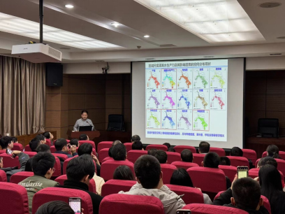 牛俊教授做了题为《河西地区农业水生产力模拟与调控》学术报告,他首先从区域尺度灌溉水生产力时空分异规律及其影响因素分析了河西走廊农业水生产力概况,接着以CO2浓度攀升问题为出发点,模拟气候变化与水分蒸发蒸腾以及作物产量的关系,最后提出利用覆膜灌溉、种植结构调整以及节水措施等调控方式优化水肥管理模式。