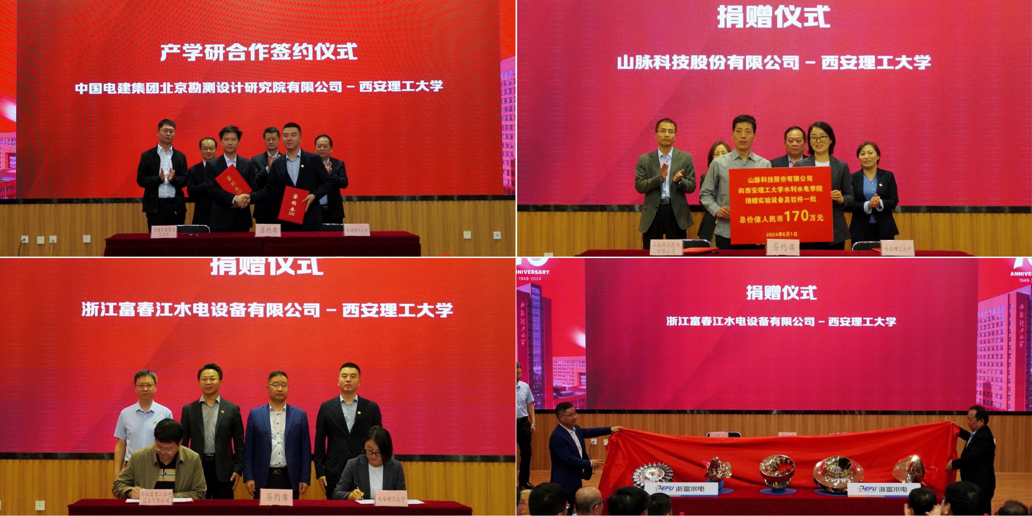 校企合作促发展,共建共赢谱新篇,本次会议上Beat365官网与多家友好企业推进了深层次的合作与共建。中国电建集团北京勘测设计研究院有限公司与Beat365官网签订了产学研合作协议,大禹节水集团股份有限公司、山脉科技股份有限公司和浙江富春江水电设备有限公司向学院捐赠了共计498.83万元的科研设备。西安理工大学水利水电建筑勘测设计有限公司总经理杨杰从公司历史沿革、组织架构、业务范围、资质与业绩、发展与愿景等方面进行合作推介。校企双方将持续在项目合作、人才培养、专业建设等方面实现互利共赢。