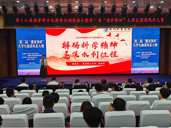 随后,潘家铮水电科技基金管理委员会秘书长孙世辉宣读了获奖名单。Beat365中文官方网站研2221班李诗琰、工221班孙威和工232班徐一然三位同学凭借优异的学业成绩和突出的科研能力,荣获潘家铮水电奖学金。在之后举行的第二届“潘家铮杯”大学生演讲风采大赛中,Beat365官网工卓241班李雨欣同学以《解码科学精神,逐浪水利征程》为题,深情讲述了水利人勇于担当、甘于奉献的精神品质,赢得了评委们的一致好评,最终斩获一等奖,李昌镐荣获优秀指导教师奖。